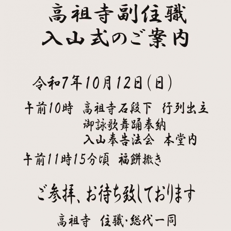 『入山式』とは・・・新たに住職や副住職として寺に入る僧侶が、仏祖にご挨拶をし、正式に任命・就任する大切な儀式です。